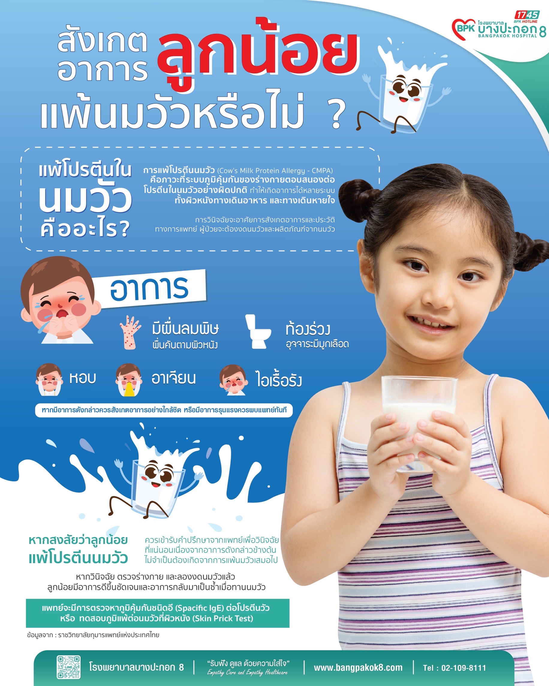 - แพทย์จะมีการตรวจหาภูมิคุ้มกันชนิดอี (Spacific IgE) ต่อโปรตีนวัว