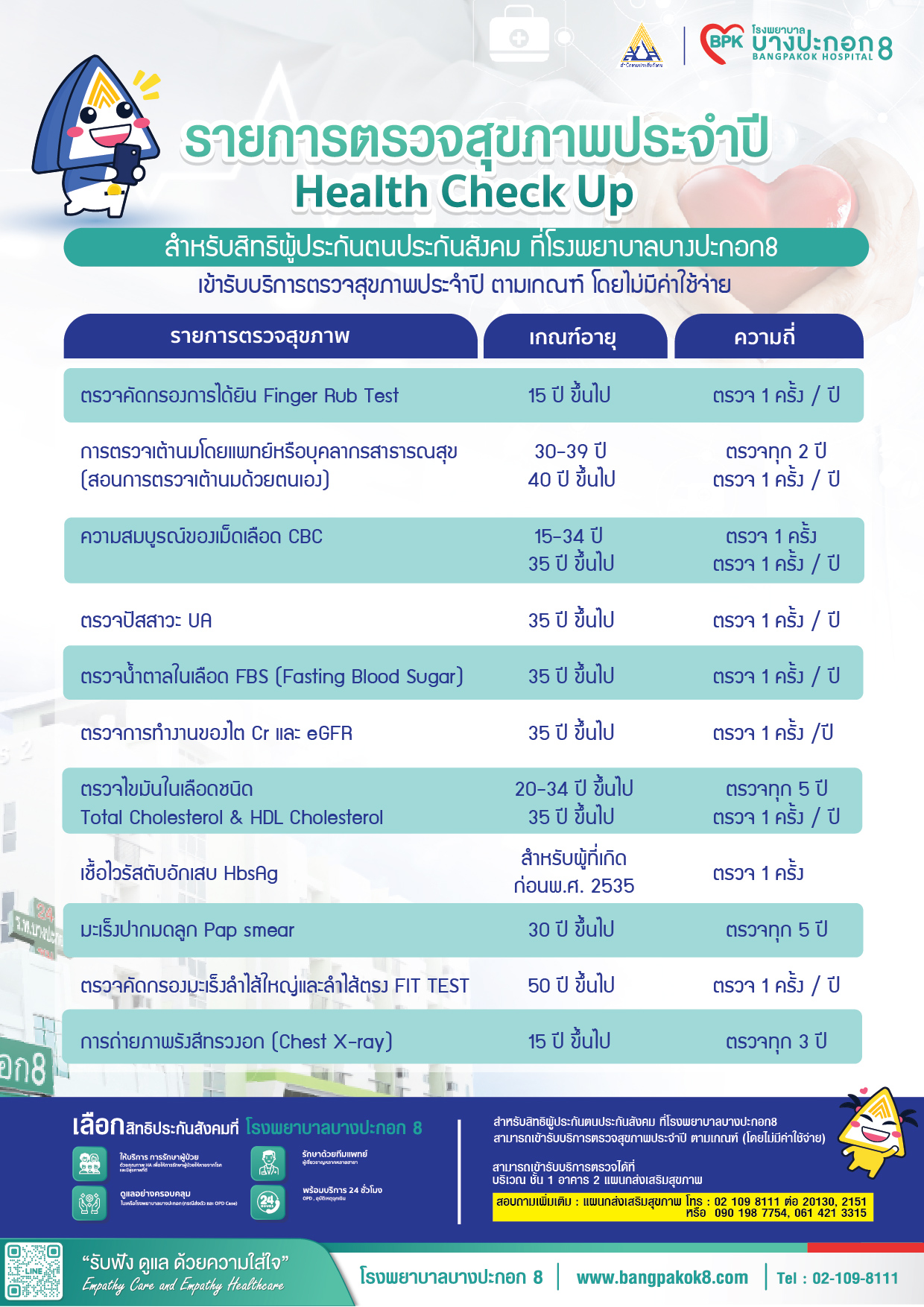 2. การตรวจสุขภาพประกันสังคมมีเงื่อนไขการตรวจสุขภาพตามเกณฑ์อายุที่แจ้งไว้
