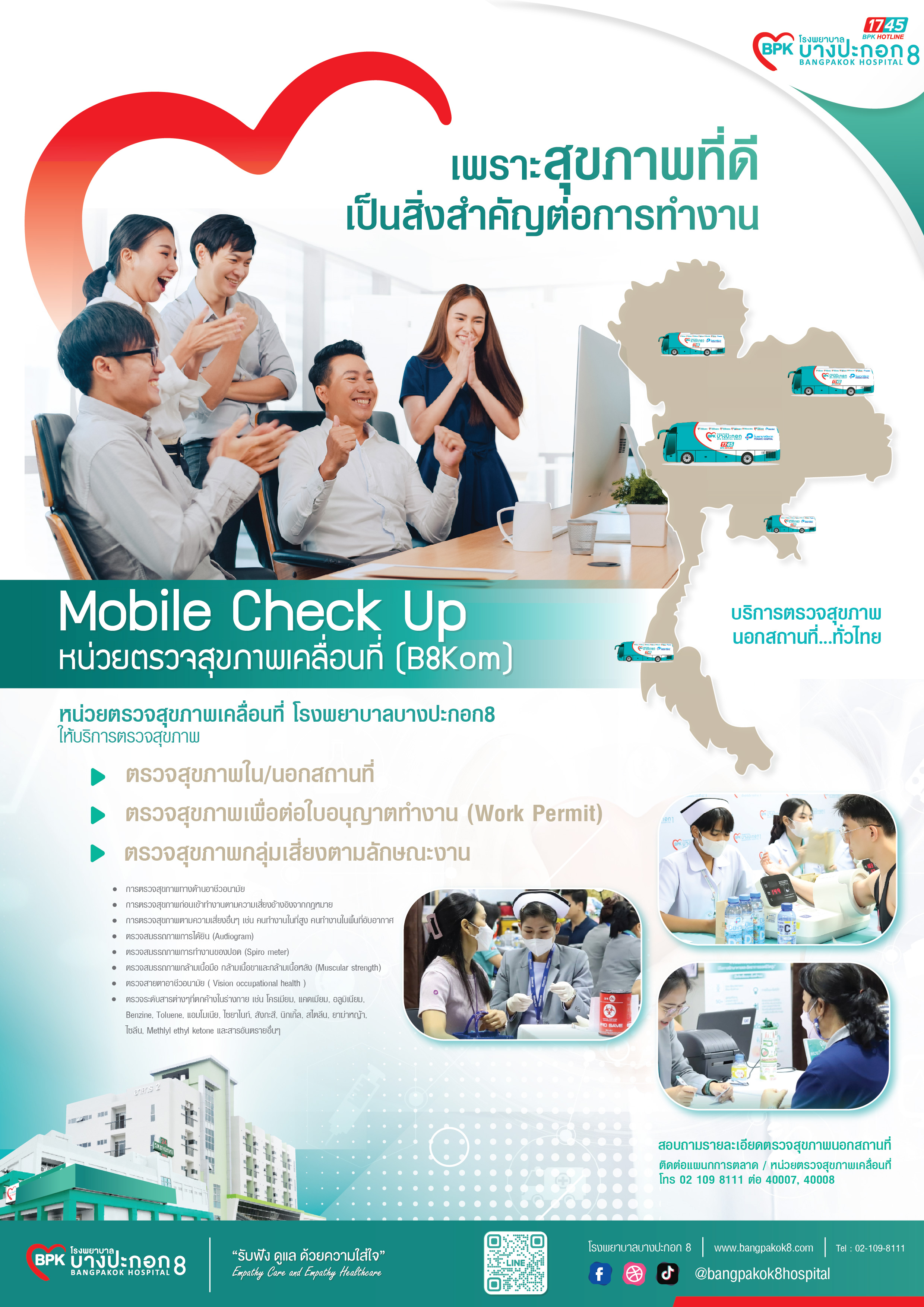 หรือ Add LineOA : @bpk8 / คลิก : https://lin.ee/cbtHx5L แจ้งขอใบเสนอราคา หน่วยตรวจสุขภาพเคลื่อนที่