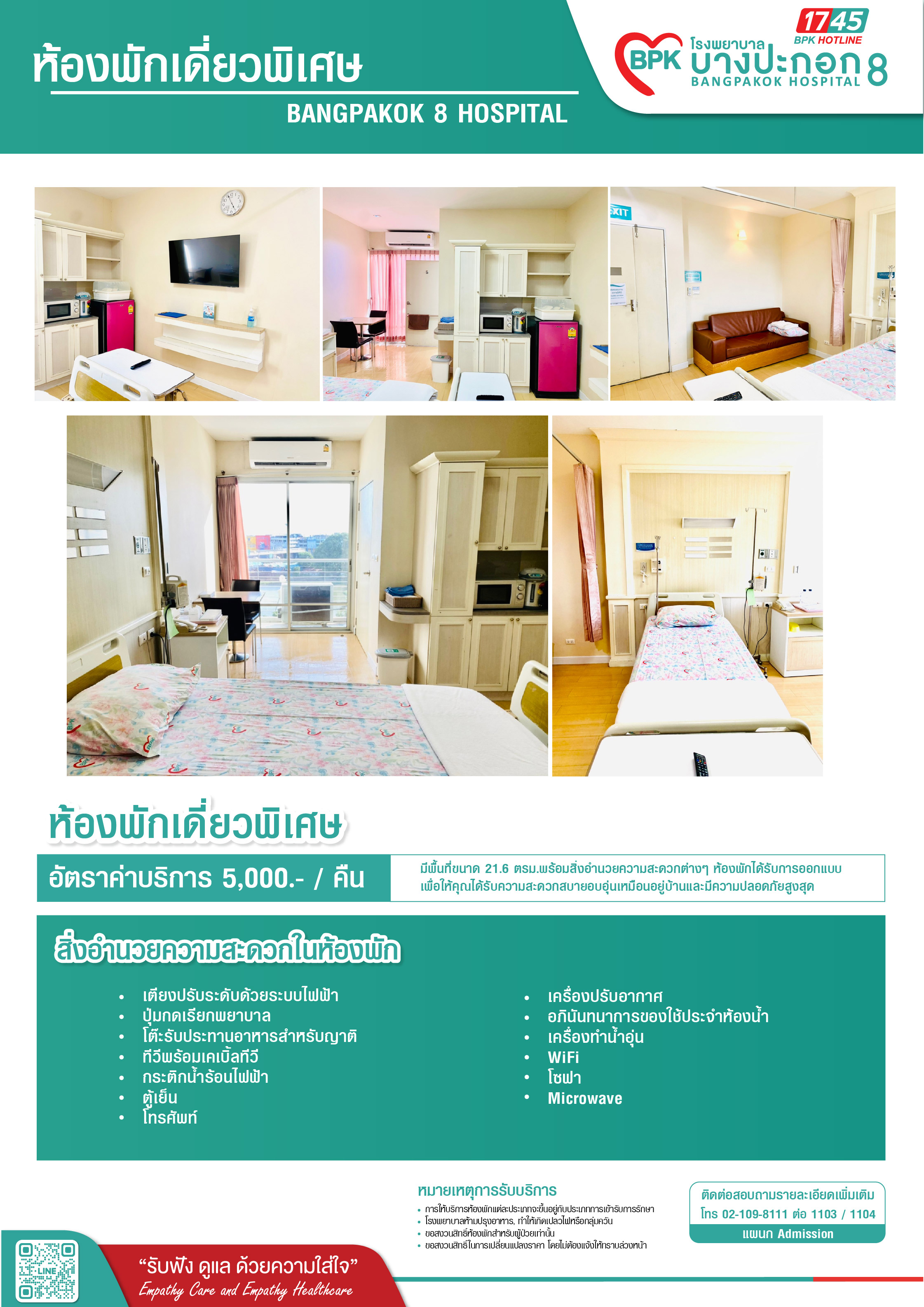 - ขอสงวนสิทธิ์ห้องพักสำหรับผู้ป่วยเท่านั้น